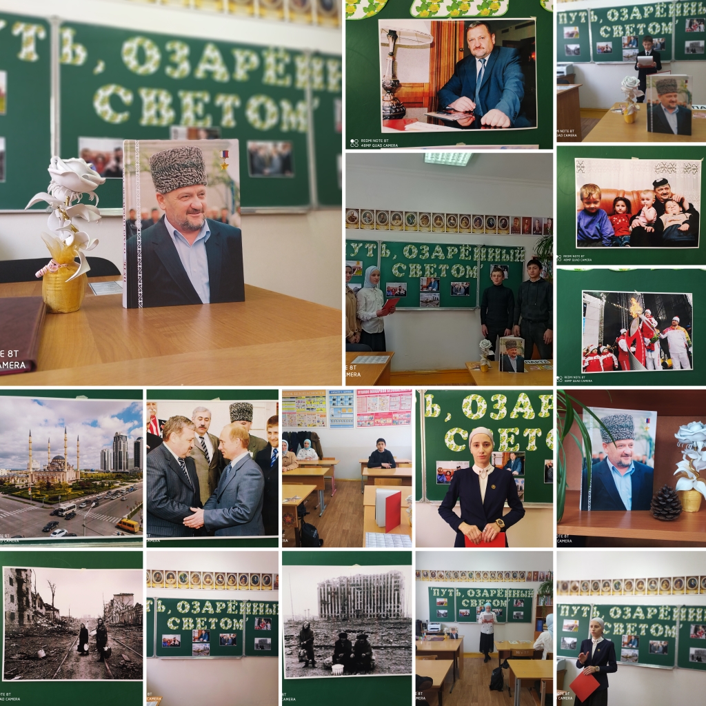 21.03.2023Учителем истории Махмудовой М.Д. был проведен классный час по книге:"Путь, озарённый светом"Классный час был посвящен жизни и деятельности Первого Президента ЧР, героя России Ахмата-Хаджи Кадырова.Главная цель проведении урока: познакомить учащихся с биографией первого президента Ахмада-Хаджи Кадырова, узнать какой вклад внёс Ахмада-Хаджи в дело процветания нашей республики, воспитывать у подрастающего поколения чувство любви к Родине, патриотизма.