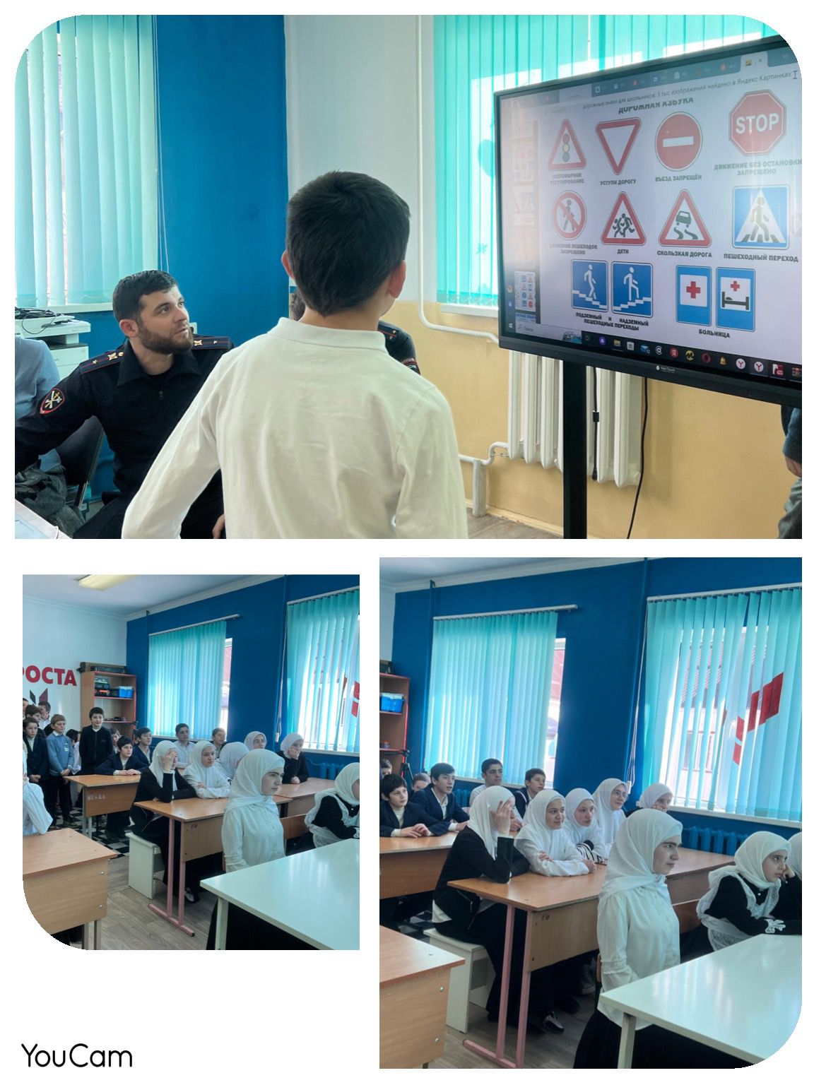 школы с старшим Инспектором ПДН ОУУП и ПДН ОМВД России по Шаройскому району лейтенант полиции Вадалов Д. М., старшим инспектором ДПС ОГИБДД ОМВД России по Шаройскому району лейтенант полиции Ражапов Р.М., и ведущим специалистом и секретарем комиссии по делам несовершеннолетних и защиты их прав кдн и зп Салаудинова З.В. .