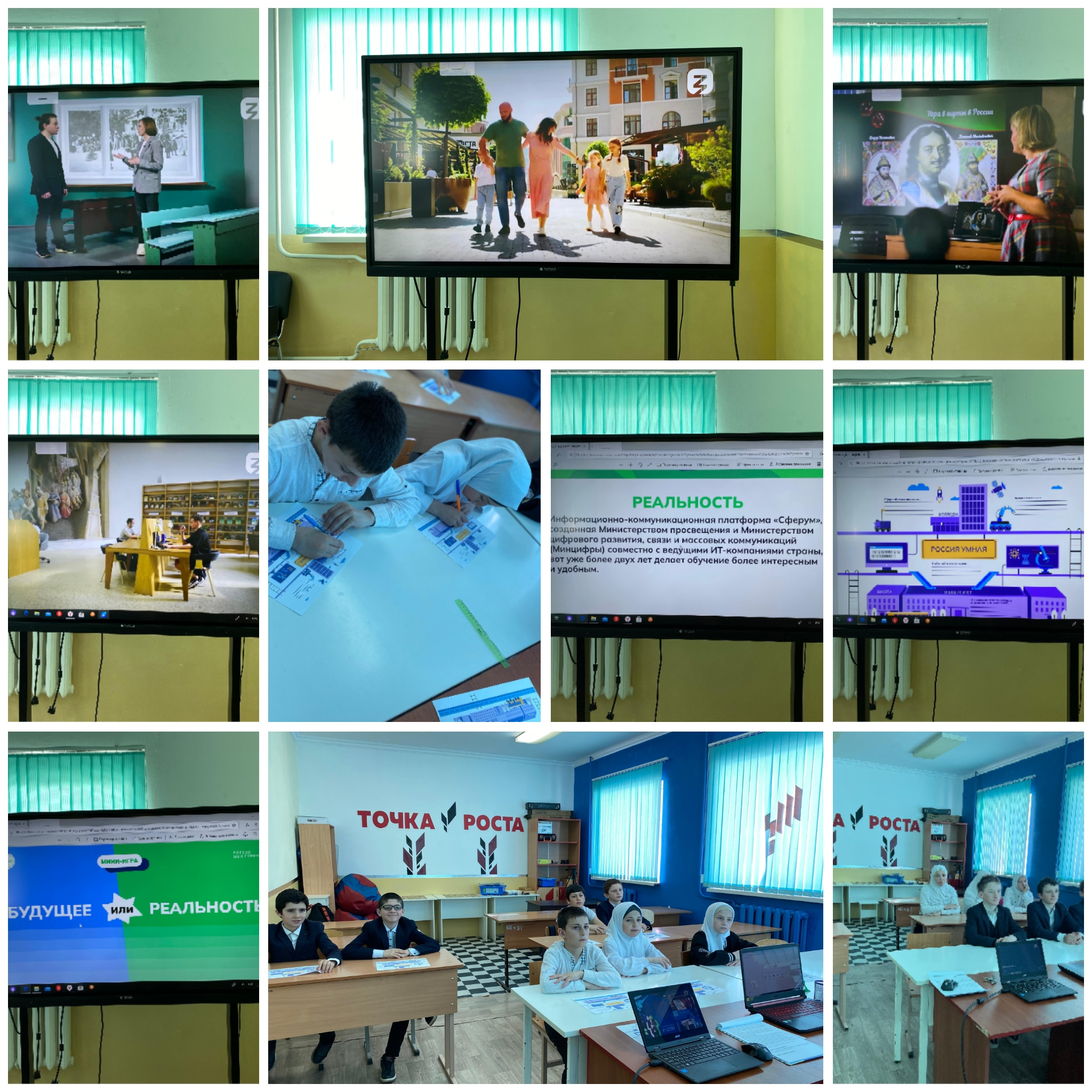 Кроме этого, ребята смогли посмотреть ролик с выставки «Россия», которая проходит в Москве на ВДНХ, включение из павильона № 57, экспозиция «Просвещение. Большие перемены», провели обзор отрасли - сравнили факты из прошлого с фактами сегодняшнего дня, посмотрели ролик «Интервью с экспертом», в котором представитель профессии рассказывал о своем труде.