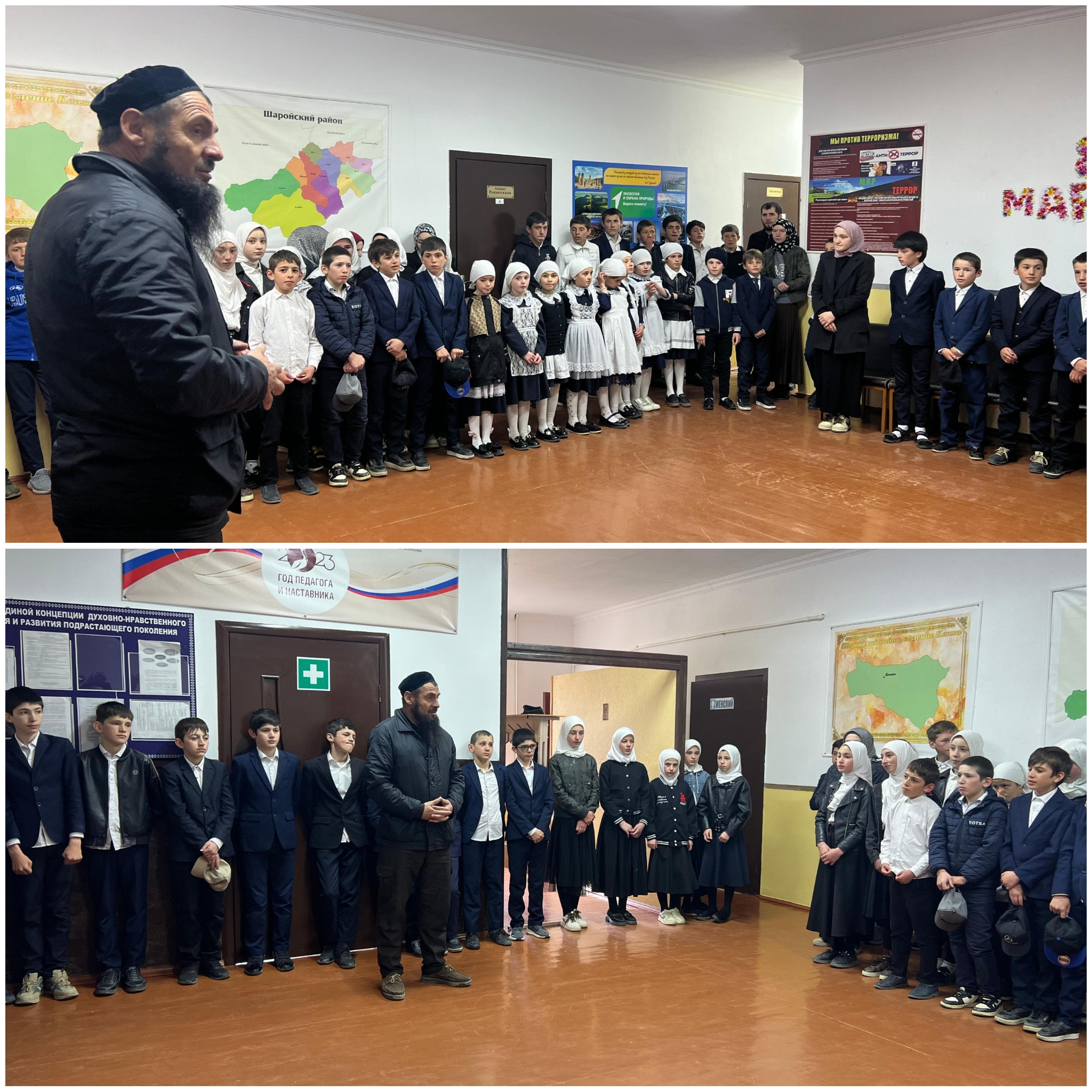 15 апреля в МБОУ "СОШ N2 c. Кенхи" советник директора по духовно-нравственному воспитанию Муртазалиев И. М. провел беседу с учащимся о значимости Дня отмены КТО для народа ЧР.