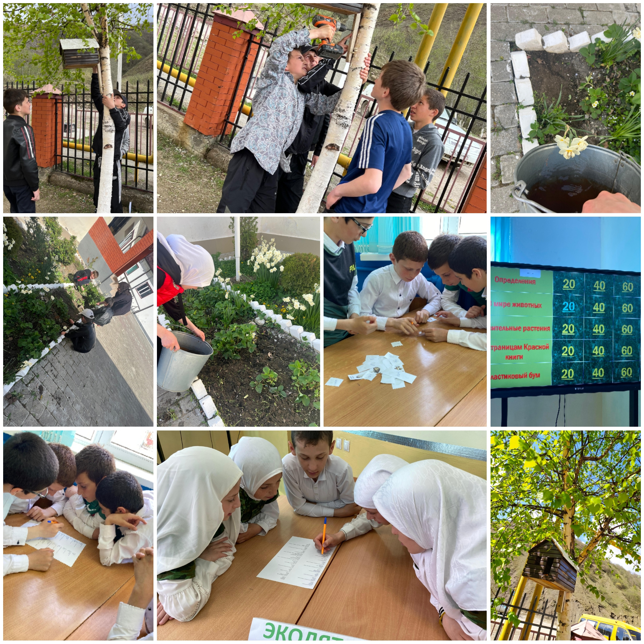 -на территории образовательного учреждения развесили скворечники;