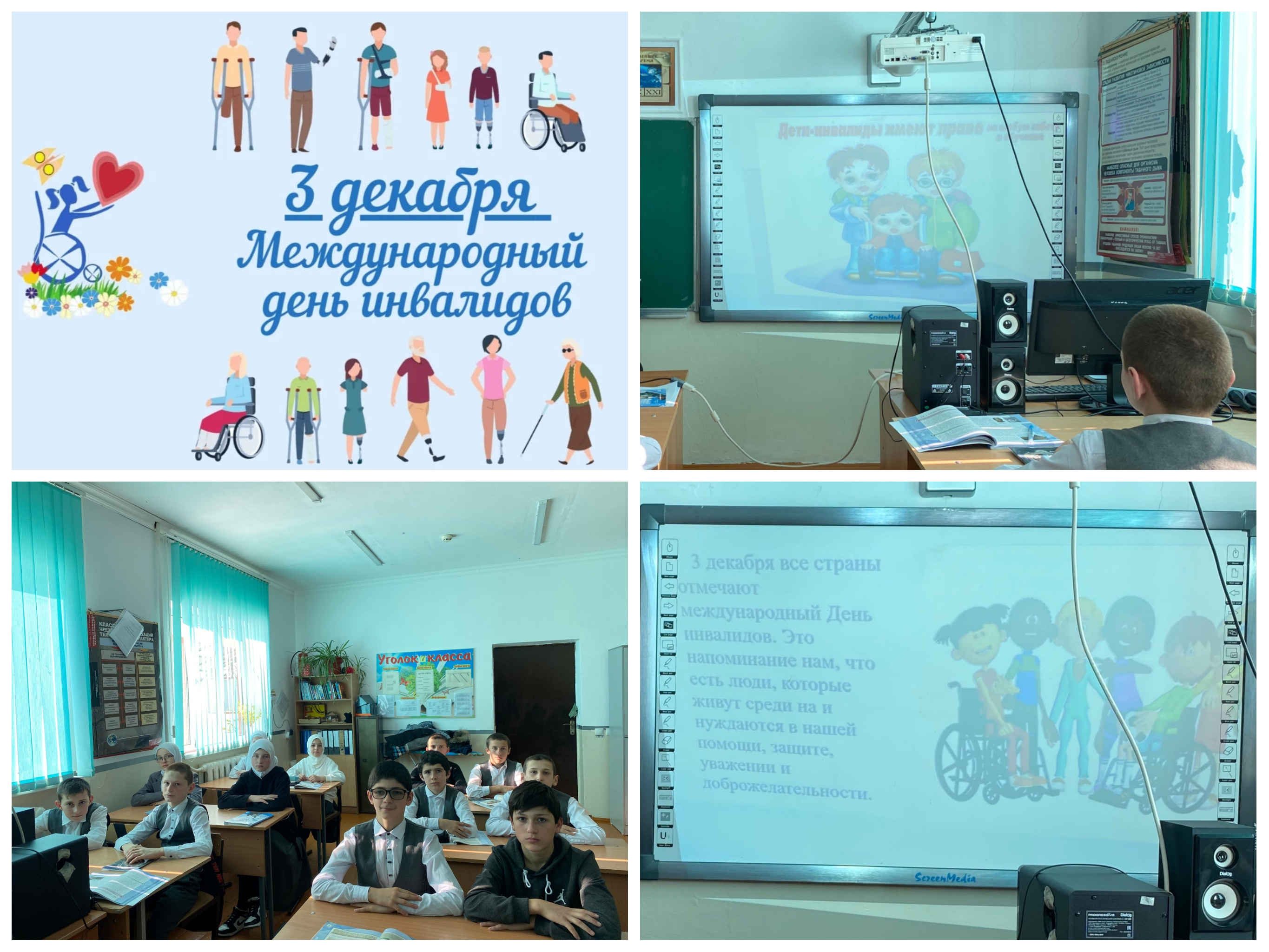 03.12.2024В целях воспитания нравственных чувств и качеств, формирования уважительного отношения к людям с ограниченными возможностями, в 7 классе 03.12.24 года был проведен классный час, посвящённый Международному дню инвалидов.
