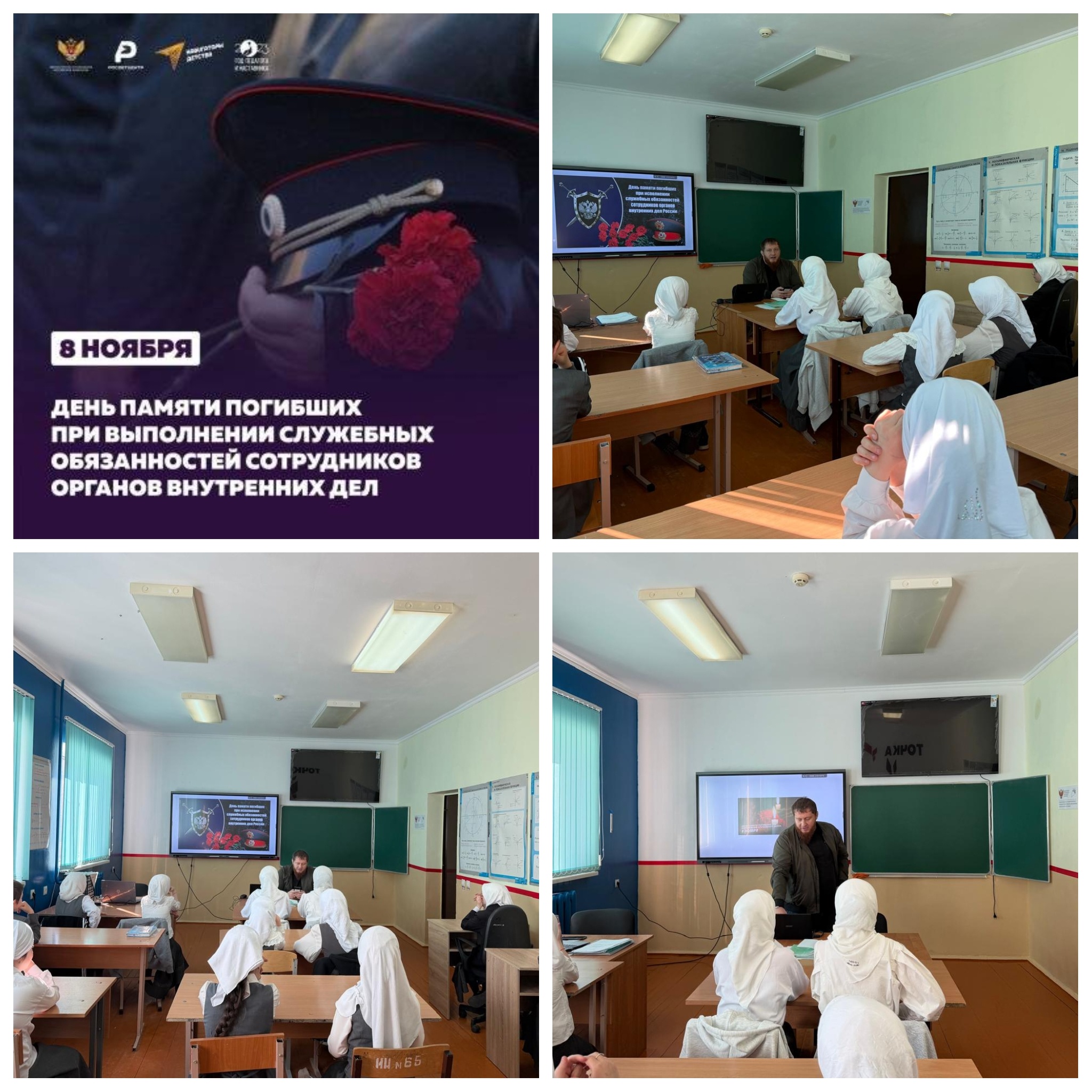 В преддверии Дня памяти погибших при исполнении служебных обязанностей сотрудников органов внутренних дел Российской Федерации в МБОУ «СОШ N2 с. Кенхи" советник директора по воспитанию Мусалов А.М., провел мероприятие, посвященное Дню памяти погибших при исполнении служебных обязанностей сотрудников органов внутренних дел России - "Из поколения в поколение". Советник директора по воспитанию Мусалов А.М., рассказал учащимся о сотрудниках полиции, которые ценой собственной жизни обеспечивали безопасность граждан России.