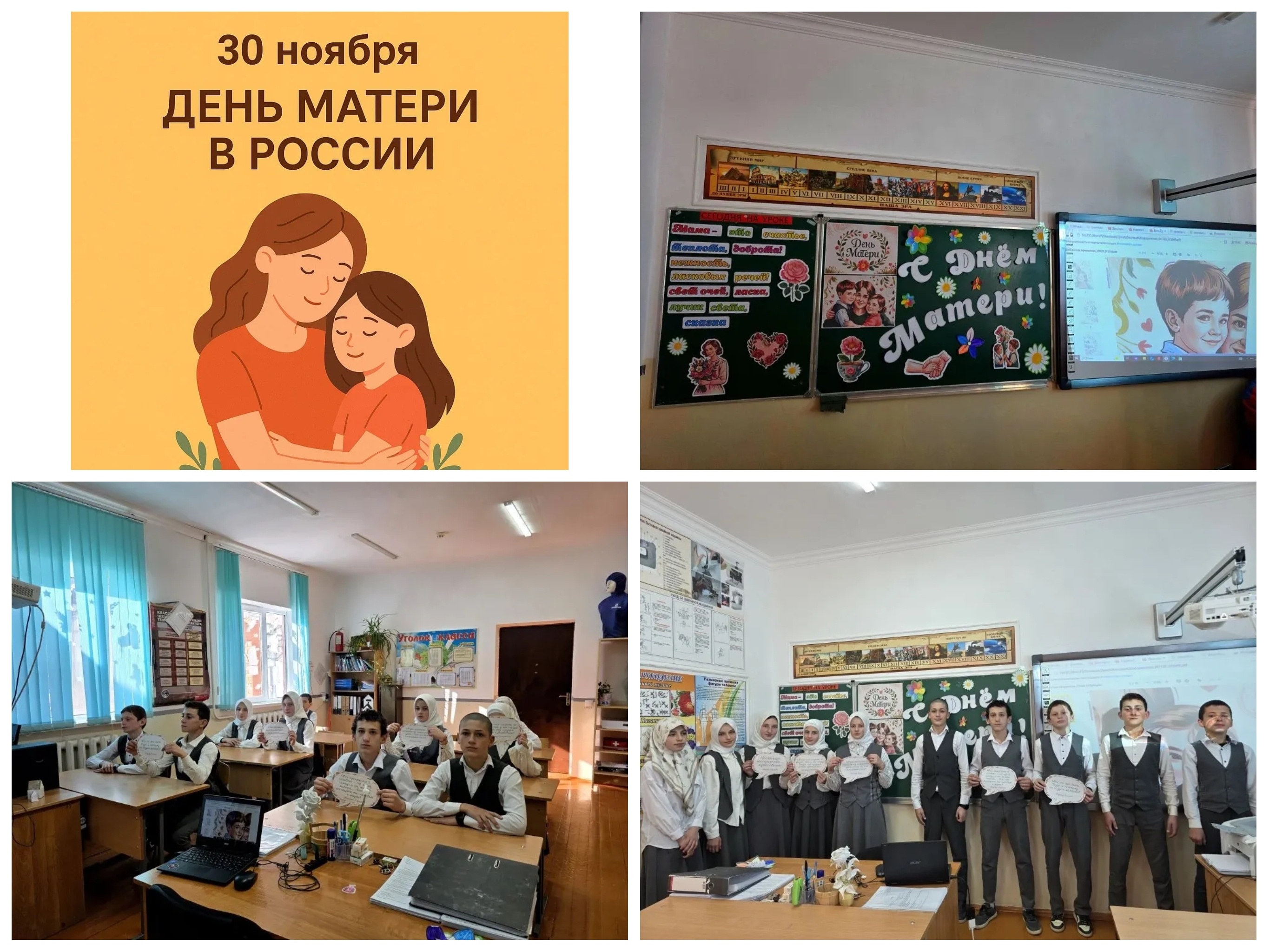 На классных часах ученики делились своими тёплыми воспоминаниями о мамах, рассказывали о том, как их мамы заботятся о семье, поддерживают и вдохновляют.