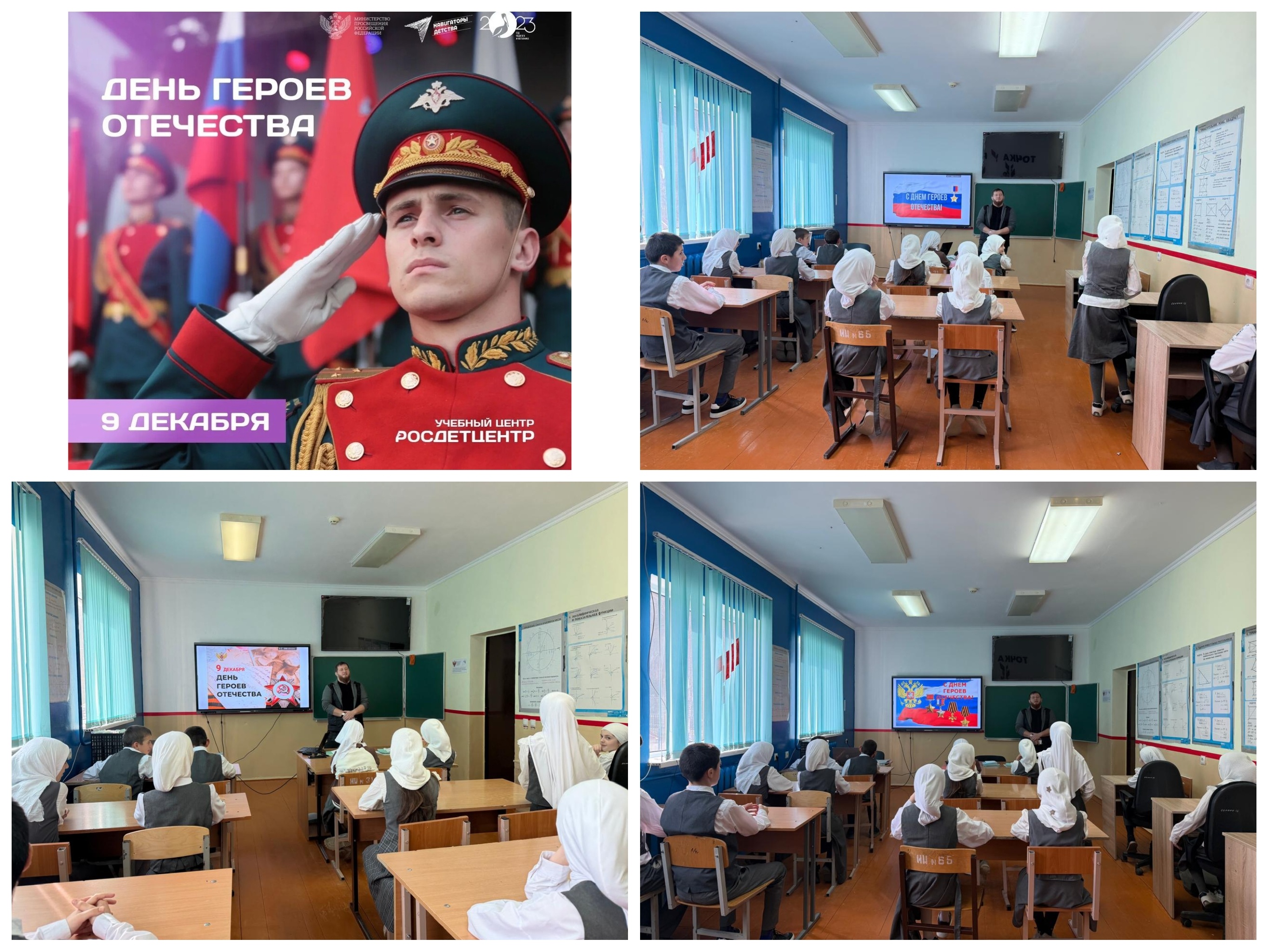 Советник директора МБОУ «СОШ №2 с.Кенхи» Мусалов А.М. провел лекцию «Кто такие герои?» в формате классного часа для обучающихся 5-7 классов, организованной и проводимой федеральным государственным бюджетным учреждением «Российский детско-юношеский центр» и Общероссийской общественно-государственной просветительской организацией «Российское общество Знание» в рамках Дня Героев Отечества. Цель лекции: сформировать у слушателей осознанное восприятие героизма как важнейшей ценности общества. Ребята приняли активное участие в обсуждении вопросов: