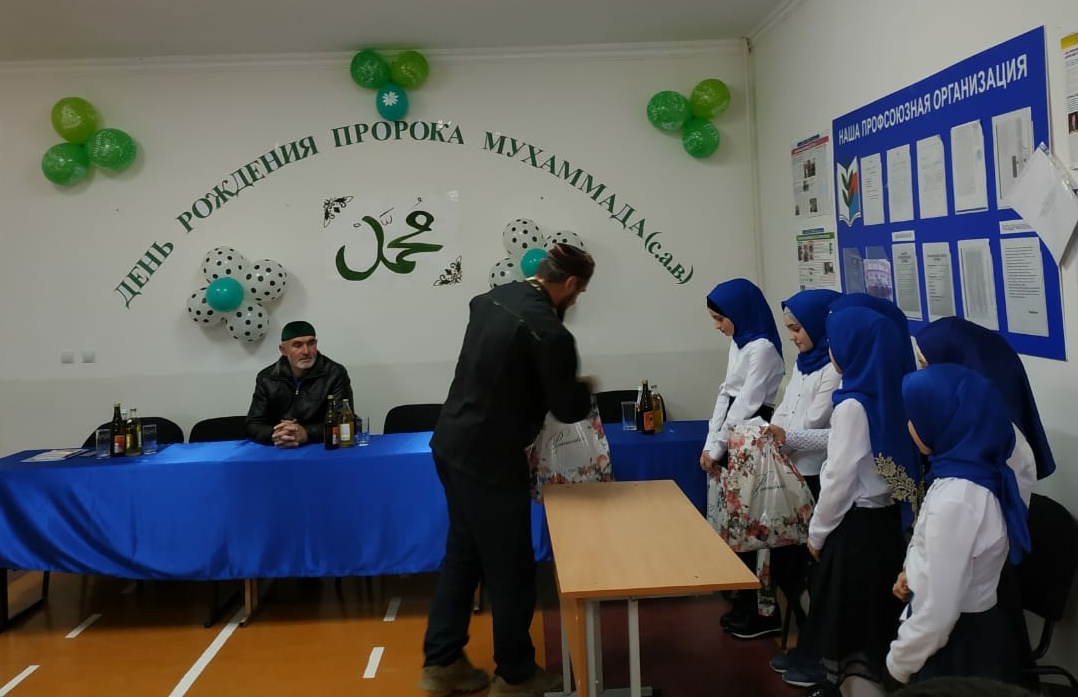 Посвящённый этому знаменательному дню в школе прошёл конкурс «Лучший знаток биографии Пророка Мухаммада(да благословит его Всевышний и приветствует)».в конкурсе приняли участие учащиеся 7-8 классов. В данном конкурсе дети рассказывали истории о жизни и деятельности Муххамада (с.а.в). Мероприятие открыл педагог по ДНРиВ Муртазалиев И.М.